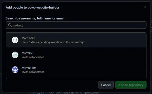 Félicitation tu as invité ton premier collaborateurs. Tu peux répéter l'opération pour tous les collaborateur que tu voudras ajouter.